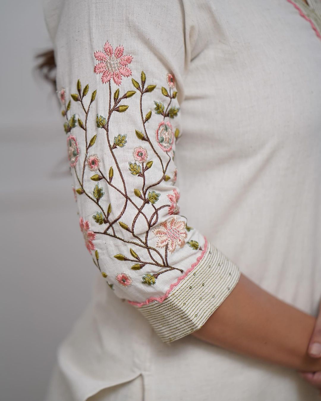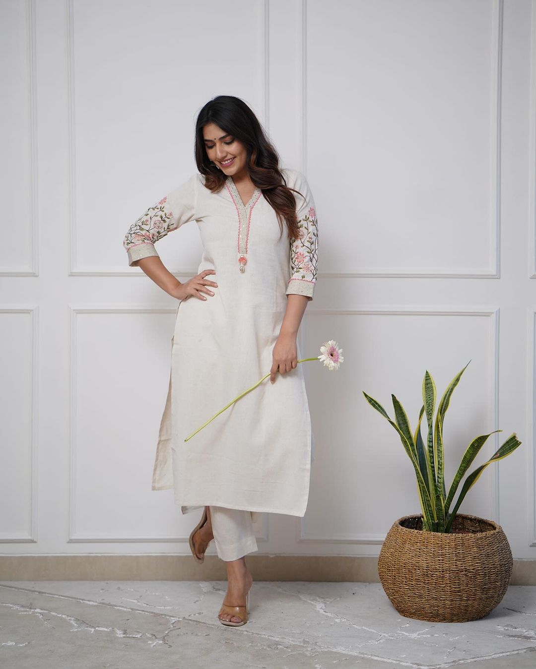 Introducing the latest addition to our fashion collection the strength kurta Style made from high-quality cotton, embellished with exquisite  sequence & thread embroidery work on neck line and paired with matching pant.