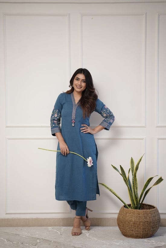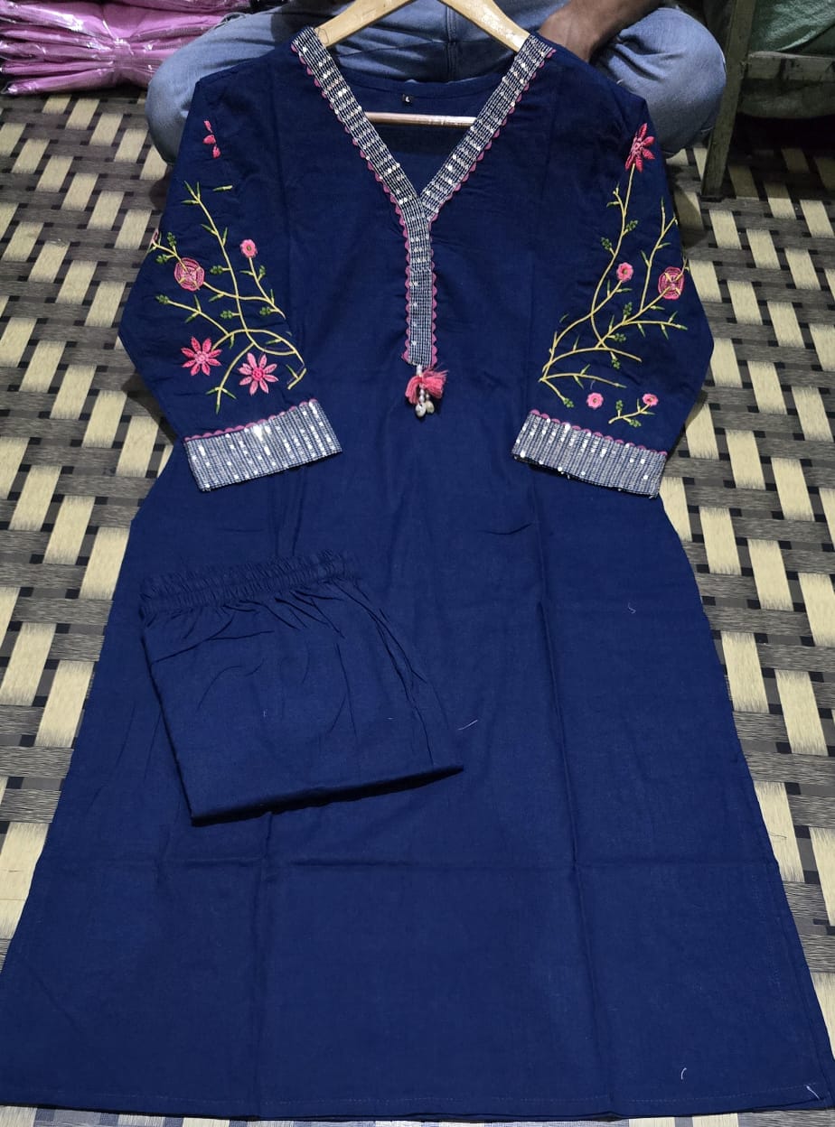 Introducing the latest addition to our fashion collection the strength kurta Style made from high-quality cotton, embellished with exquisite sequence & thread embroidery work on neck line and paired with matching pant.